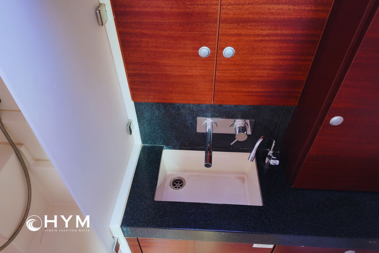 The result is fast, comfortable passage-making, genuinely relaxed short-handed sailing, and total confidence beyond the marina. Below deck, three double cabins and two heads offer generous space for cruising or liveaboard use.