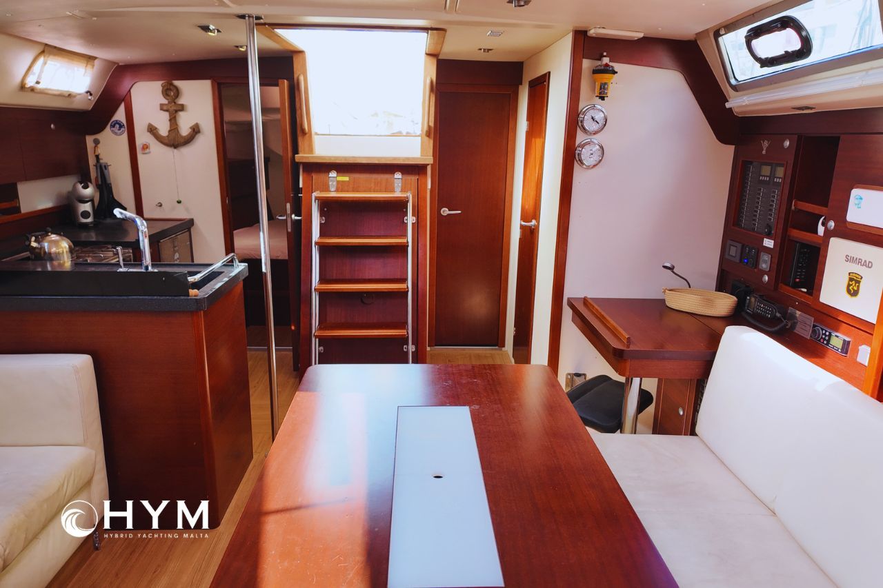 The result is fast, comfortable passage-making, genuinely relaxed short-handed sailing, and total confidence beyond the marina. Below deck, three double cabins and two heads offer generous space for cruising or liveaboard use.