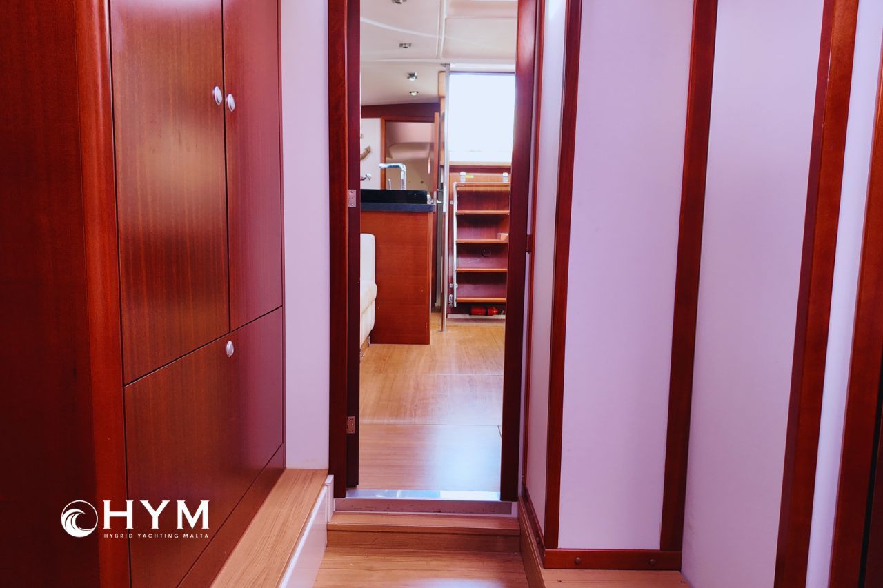 The result is fast, comfortable passage-making, genuinely relaxed short-handed sailing, and total confidence beyond the marina. Below deck, three double cabins and two heads offer generous space for cruising or liveaboard use.