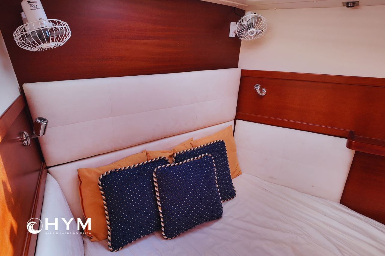 The result is fast, comfortable passage-making, genuinely relaxed short-handed sailing, and total confidence beyond the marina. Below deck, three double cabins and two heads offer generous space for cruising or liveaboard use.