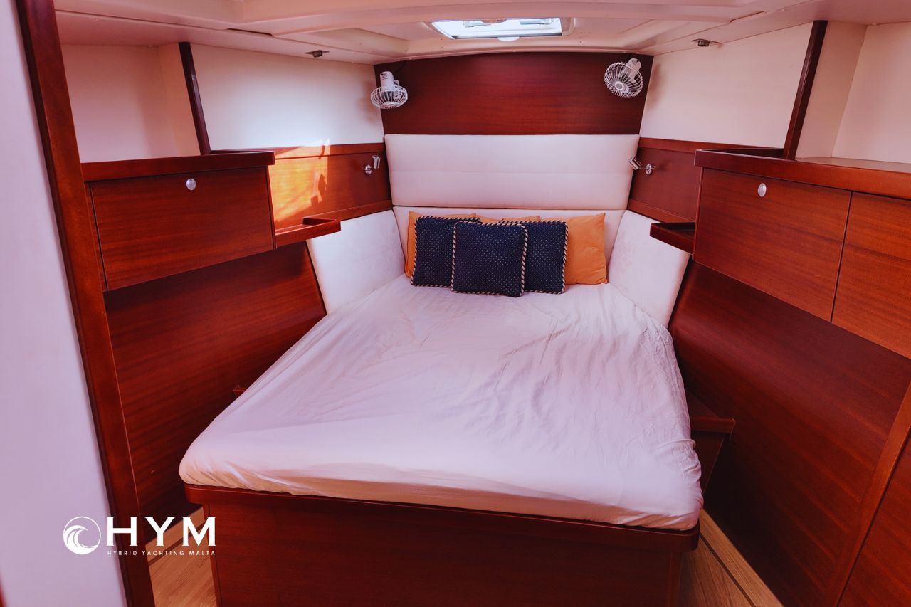 The result is fast, comfortable passage-making, genuinely relaxed short-handed sailing, and total confidence beyond the marina. Below deck, three double cabins and two heads offer generous space for cruising or liveaboard use.