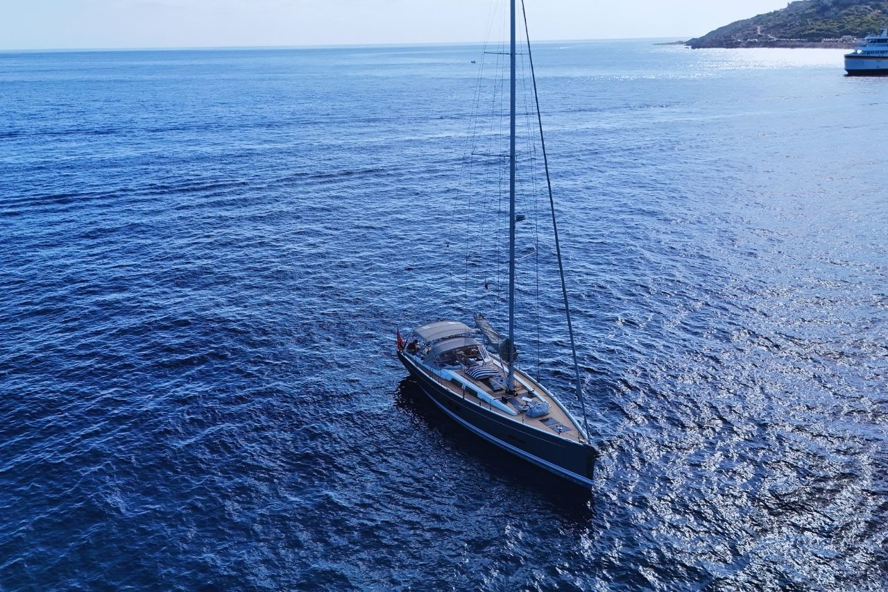 From her Elvstrom Blue Water Runner and storm sail to a thoughtfully outfitted interior including a wine cooler and full galley upgrades, she’s been prepared for long-range cruising in comfort. Power and control come from the Volvo Penta D3-110 with retractable bow and stern thrusters, while electric halyard winches, water maker, and upgraded generator support independence at sea.