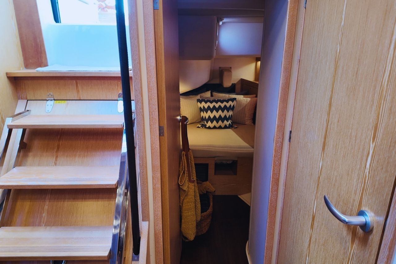 From her Elvstrom Blue Water Runner and storm sail to a thoughtfully outfitted interior including a wine cooler and full galley upgrades, she’s been prepared for long-range cruising in comfort. Power and control come from the Volvo Penta D3-110 with retractable bow and stern thrusters, while electric halyard winches, water maker, and upgraded generator support independence at sea.
